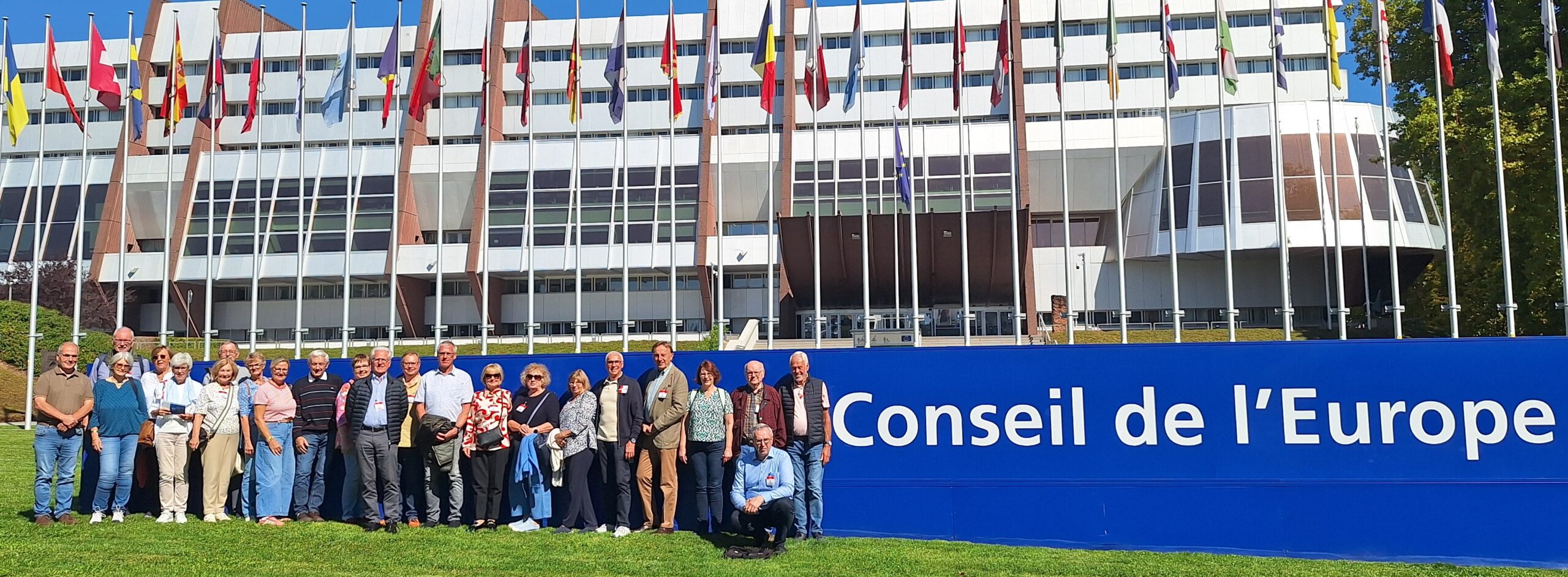Das Foto zeigt die Gruppe vor dem Europarat.